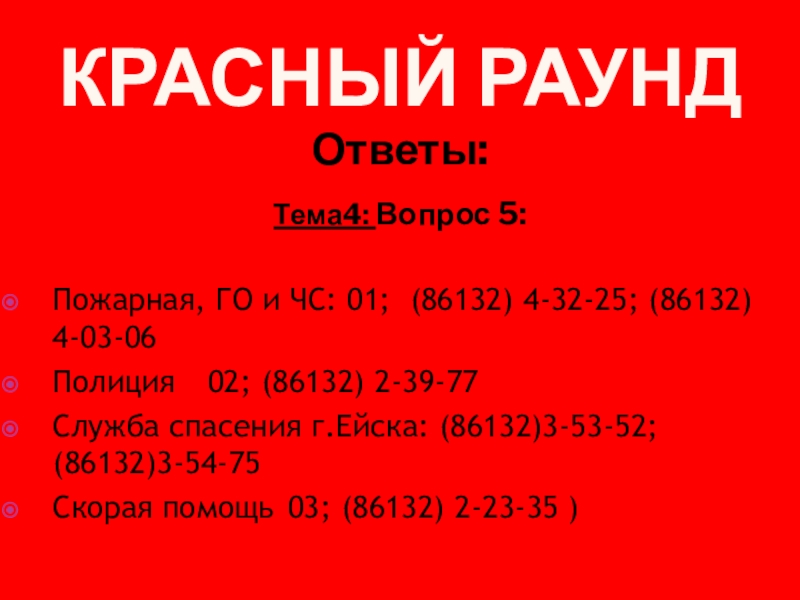 Служба спасения г.Ейска: (86132)3-53-52; (86132)3-54-75