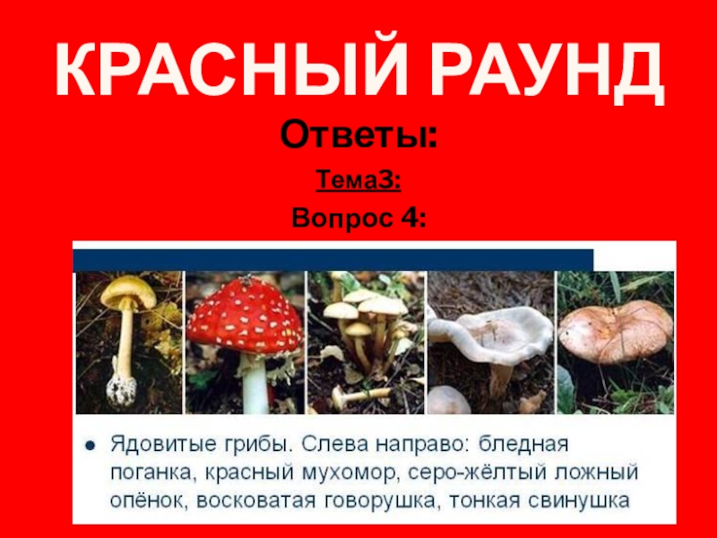 Вопрос 4: Назовите ядовитые грибы