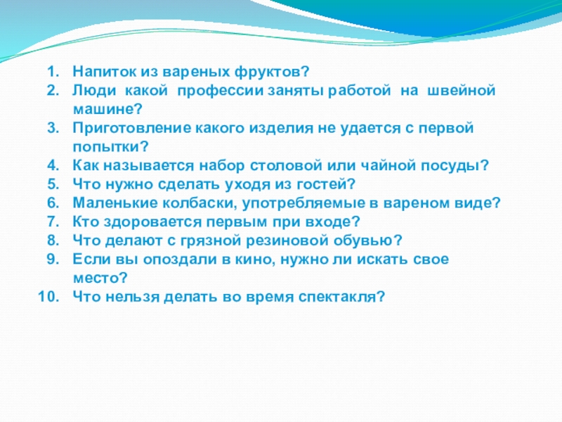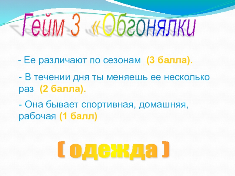 - Она бывает спортивная, домашняя, рабочая (1 балл)