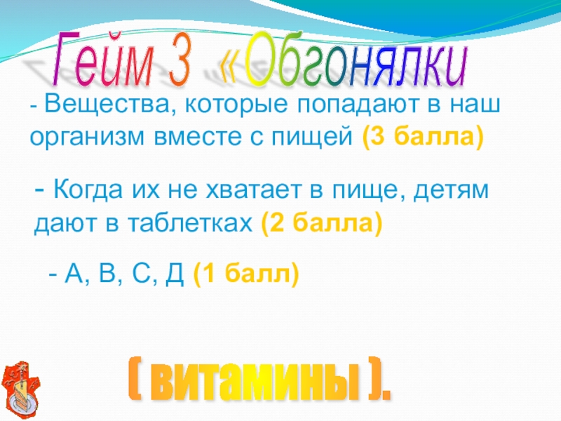 - Когда их не хватает в пище, детям дают в таблетках (2 балла)