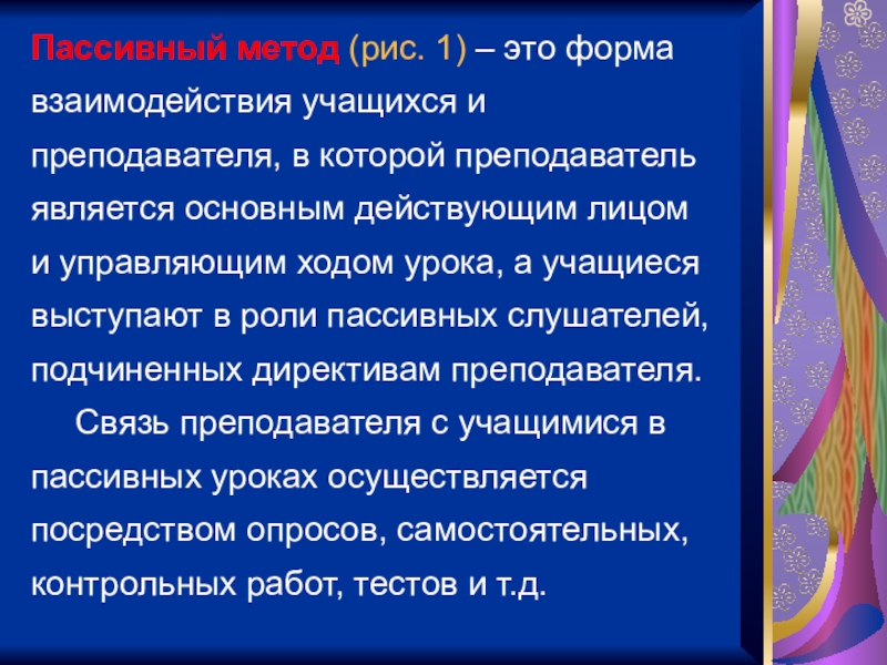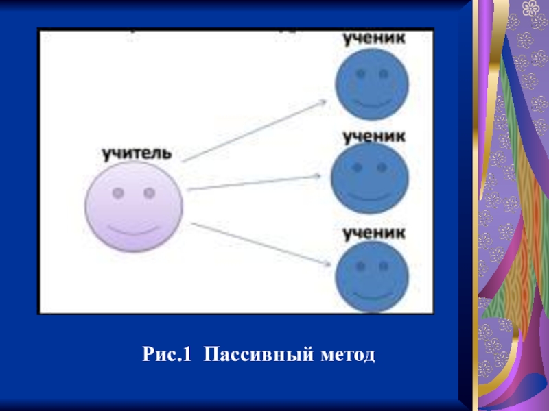 Слайд 5Пассивный метод (рис. 1) – это форма взаимодействия учащихся и преподавателя, в