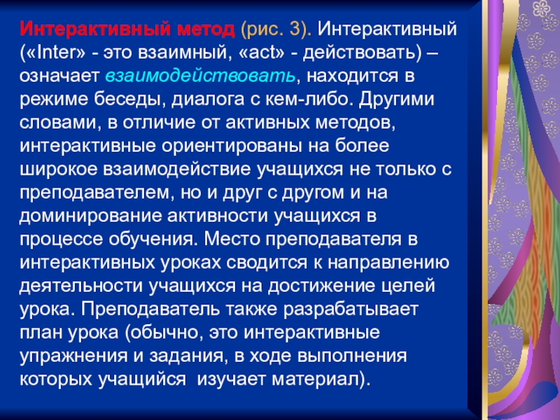 Слайд 9Интерактивный метод (рис. 3). Интерактивный («Inter» - это взаимный, «act» - действовать)