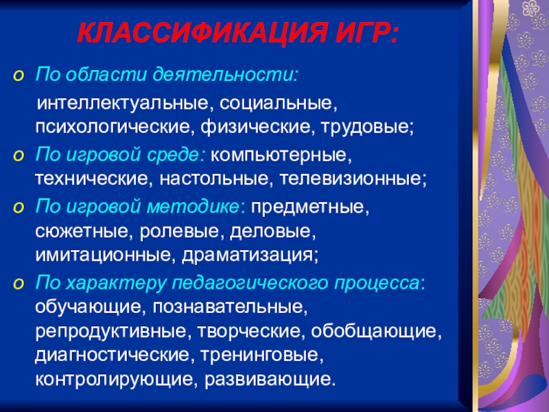Слайд 13КЛАССИФИКАЦИЯ ИГР: