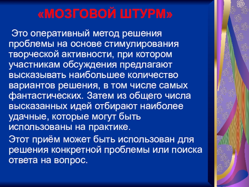 Это оперативный метод решения проблемы на основе стимулирования творческой активности,