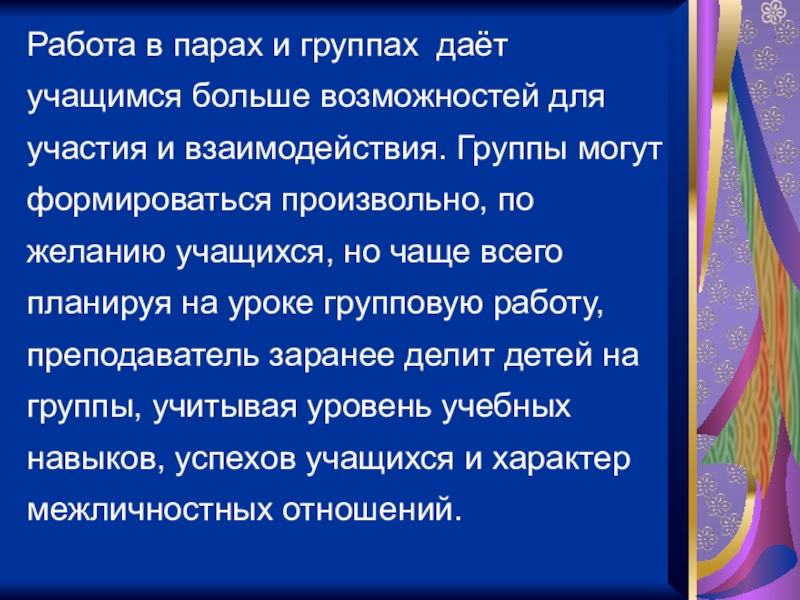 Слайд 17Работа в парах и группах даёт учащимся больше возможностей для участия