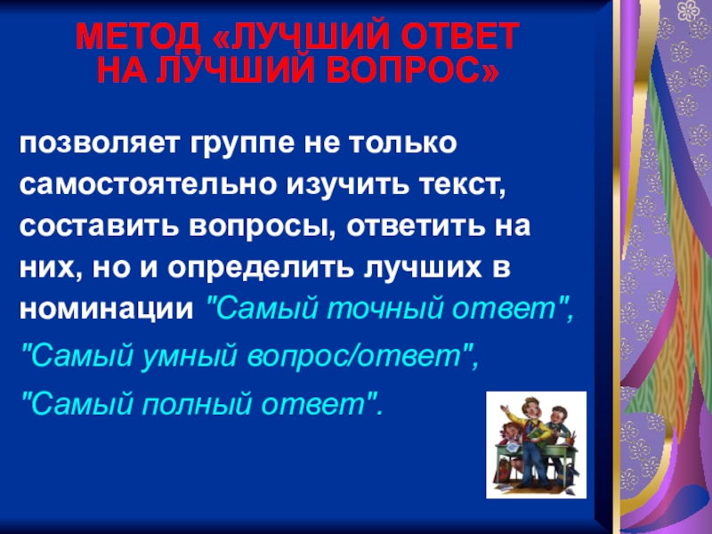 Слайд 32МЕТОД «ЛУЧШИЙ ОТВЕТ НА ЛУЧШИЙ ВОПРОС»