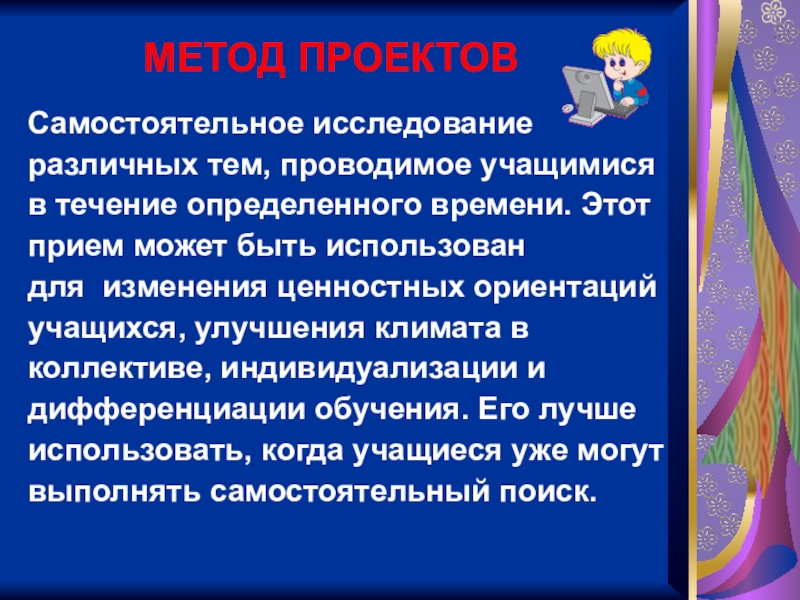 Самостоятельное исследование различных тем, проводимое учащимися в течение определенного времени. Этот