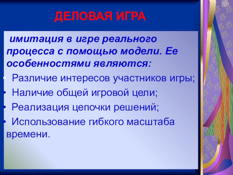 имитация в игре реального процесса с помощью модели. Ее особенностями
