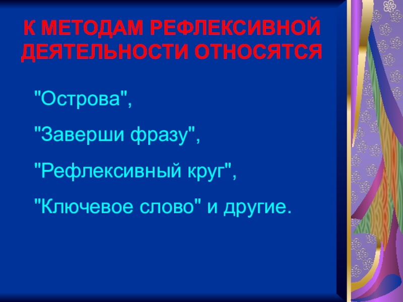 Слайд 42К МЕТОДАМ РЕФЛЕКСИВНОЙ ДЕЯТЕЛЬНОСТИ ОТНОСЯТСЯ