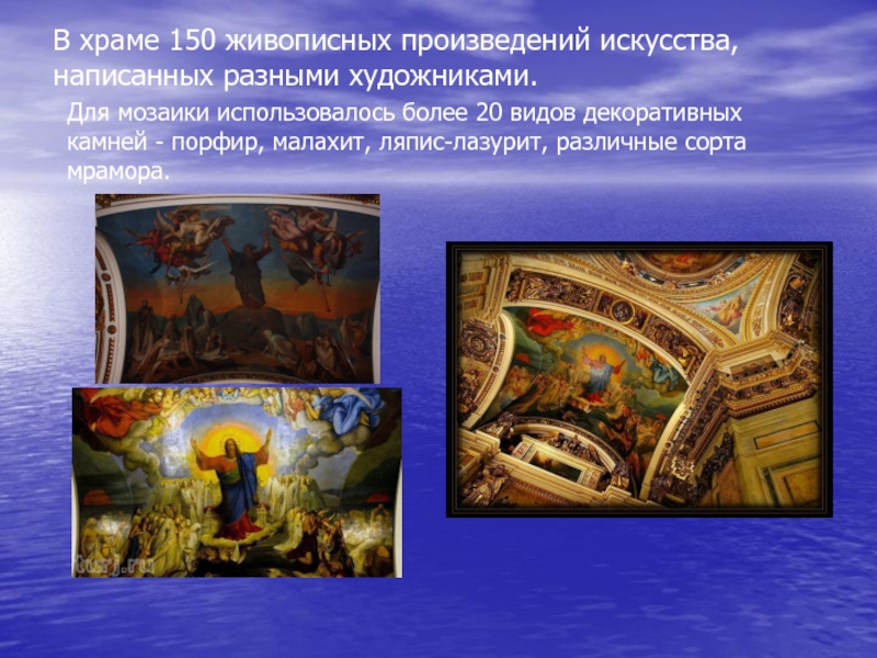 Слайд 17В храме 150 живописных произведений искусства, написанных разными художниками.