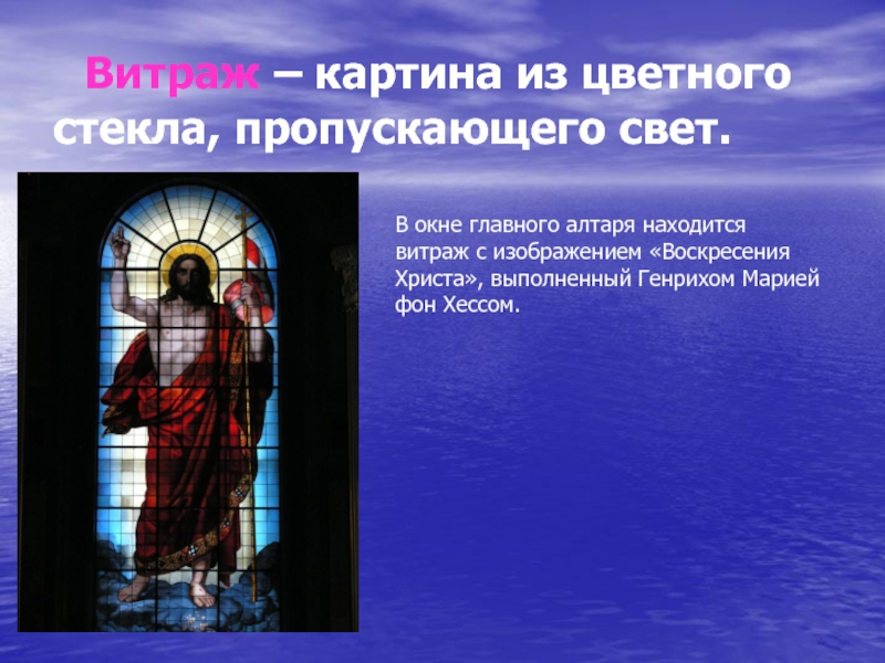 Слайд 14 Витраж – картина из цветного стекла, пропускающего свет.