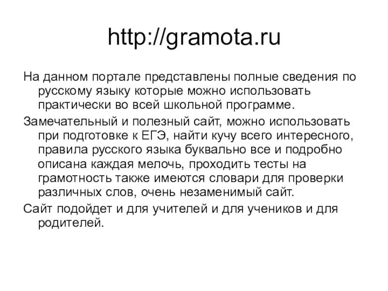 Это сайт презентаций, где можно хранить и обмениваться своими презентациями, докладами, проектами, шаблонами в формате PowerPoint с другими пользователями. Мы помогаем школьникам, студентам, учителям, преподавателям хранить и обмениваться учебными материалами.