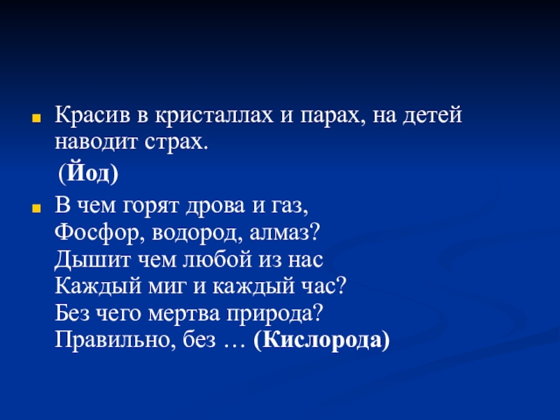 Из букв, соответствующих правильным ответам, вы получите названия химических элементов.