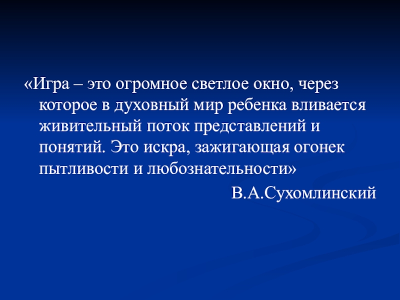 ребенка вливается живительный поток представлений и понятий. Это искра, зажигающая огонек пытливости и любознательности»