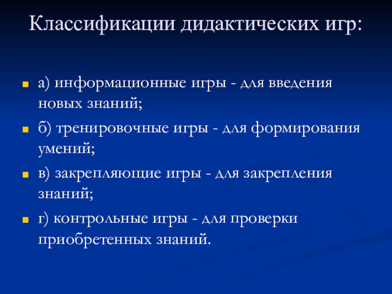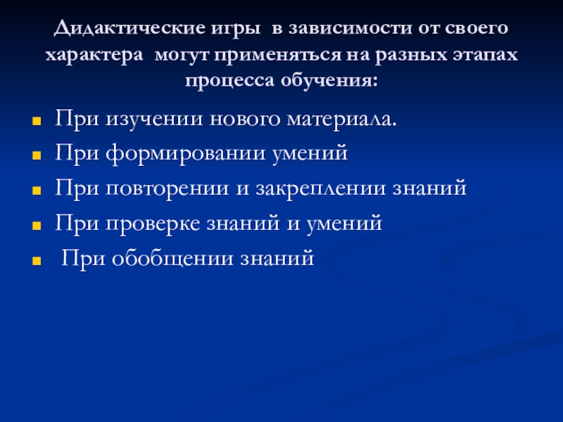 Слайд 9Дидактические игры в зависимости от своего характера могут применяться на разных