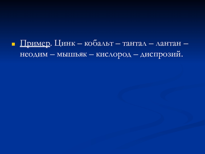 Пример. Цинк – кобальт – тантал – лантан – неодим –