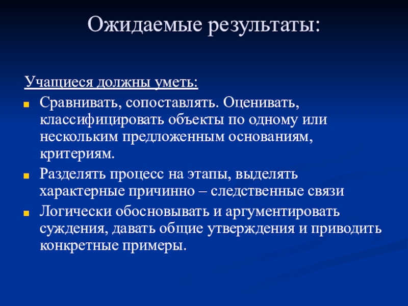 Сравнивать, сопоставлять. Оценивать, классифицировать объекты по одному или