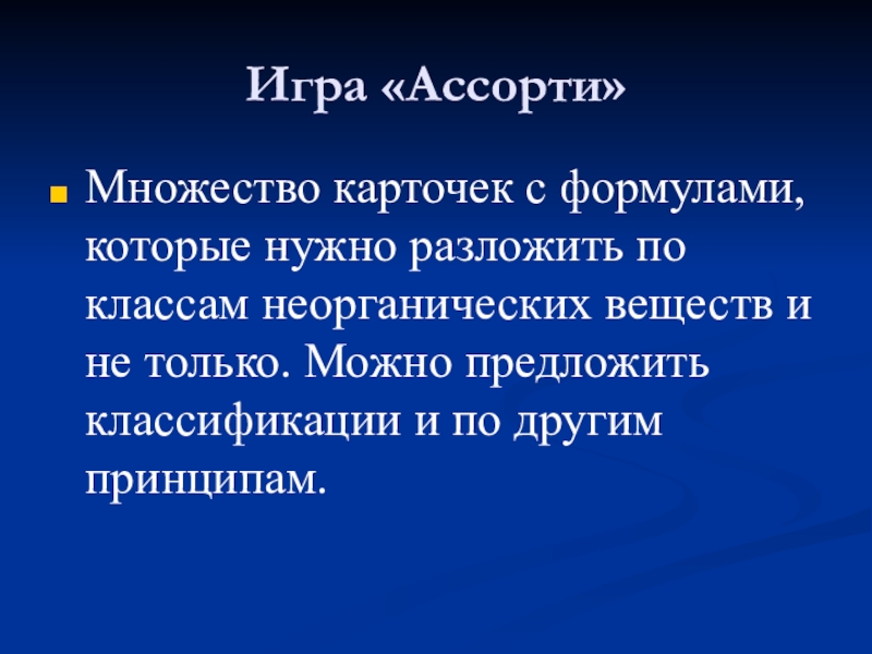 Множество карточек с формулами, которые нужно разложить по классам неорганических