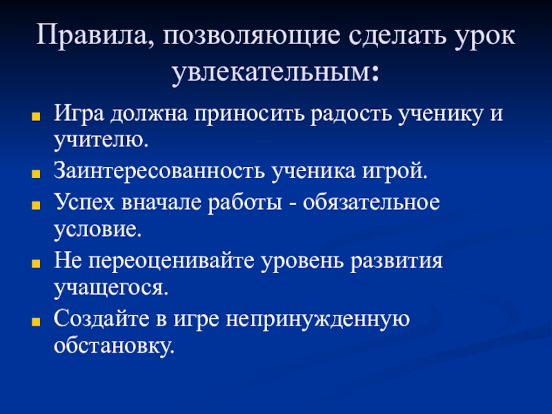 Слайд 6Правила, позволяющие сделать урок увлекательным: