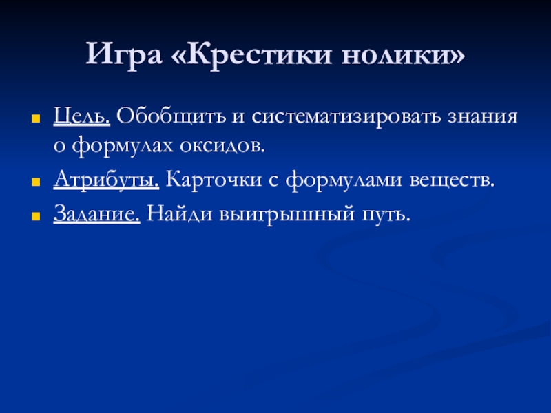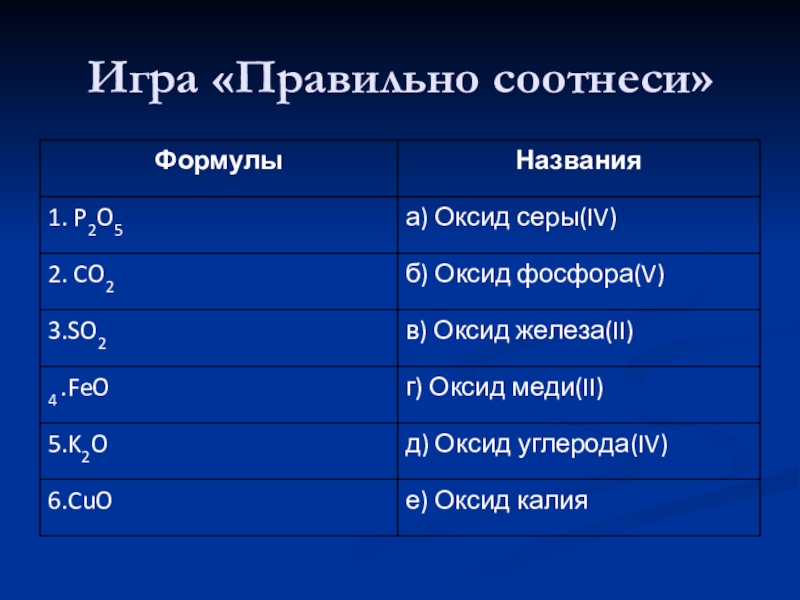 Цель. Обобщить и систематизировать знания о формулах оксидов.