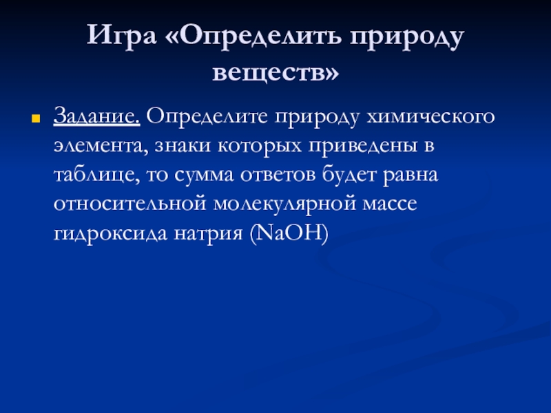 в таблице, то сумма ответов будет равна относительной молекулярной массе гидроксида натрия (NaOH)