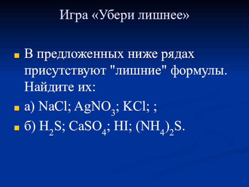 В предложенных ниже рядах присутствуют "лишние" формулы. Найдите их: