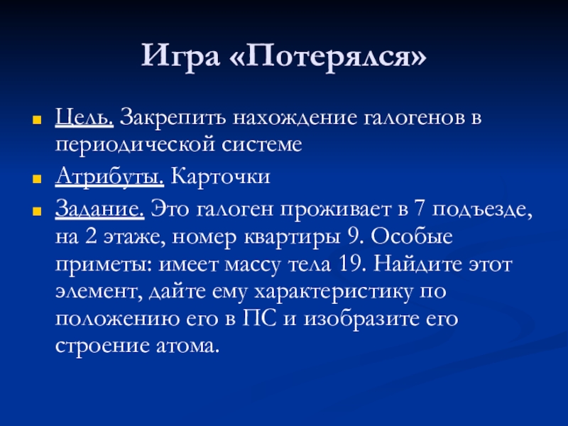 галоген проживает в 7 подъезде, на 2 этаже, номер квартиры 9. Особые приметы: имеет массу тела 19. Найдите этот элемент, дайте ему характеристику по положению его в ПС и изобразите его строение атома.