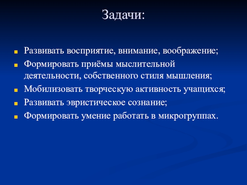 Формировать приёмы мыслительной деятельности, собственного стиля мышления;