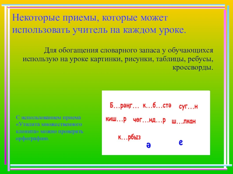 Для обогащения словарного запаса у обучающихся использую на уроке картинки, рисунки, таблицы, ребусы, кроссворды.