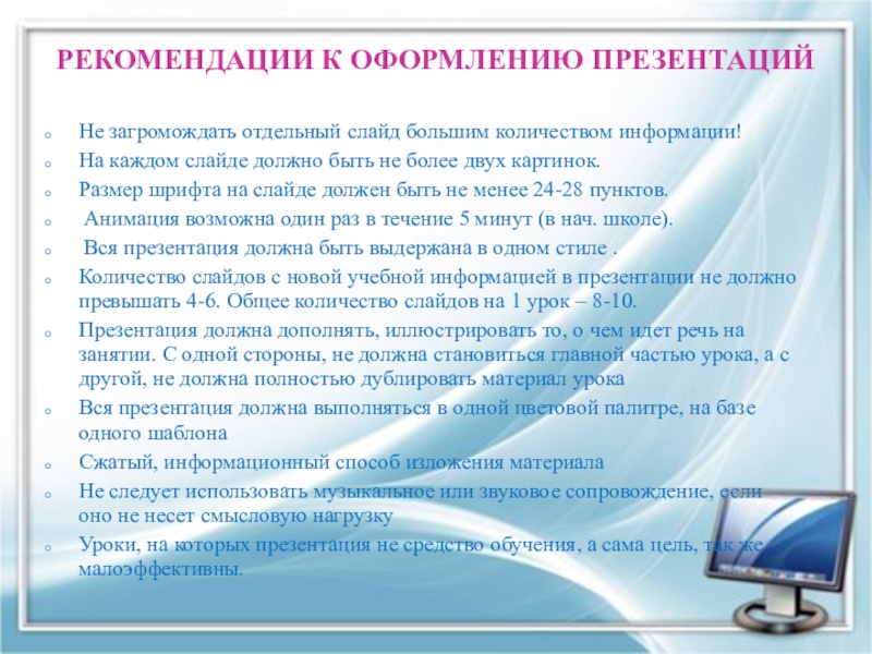 Слайд 9РЕКОМЕНДАЦИИ К ОФОРМЛЕНИЮ ПРЕЗЕНТАЦИЙ