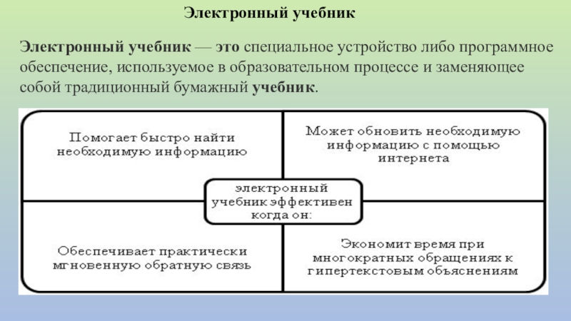 сетевые технологии — позволяют использовать учебные материалы в рамках локальной сети учебного заведения, а также глобальной сети Интернет.