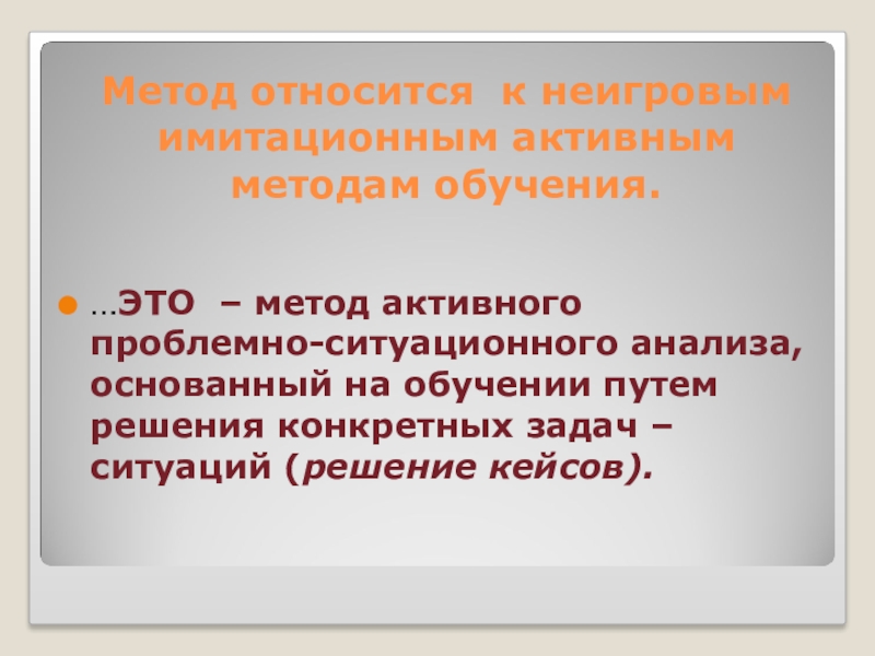 Слайд 3Метод относится к неигровым имитационным активным методам обучения.