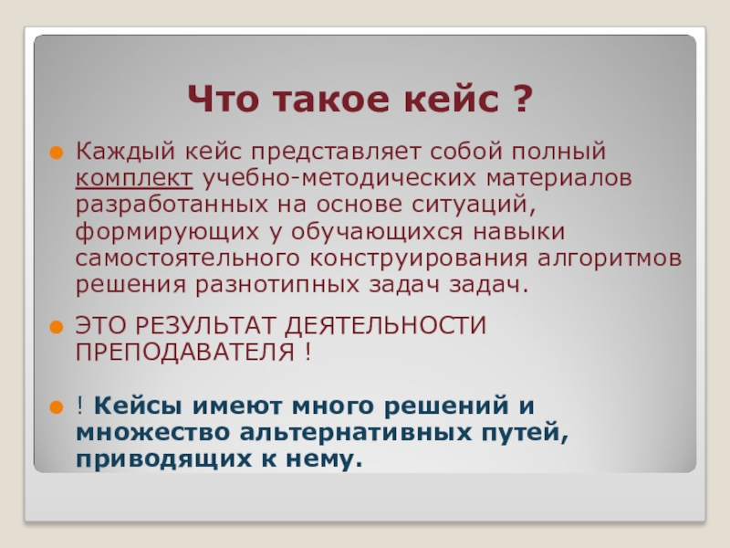 ! Кейсы имеют много решений и множество альтернативных путей, приводящих к нему.