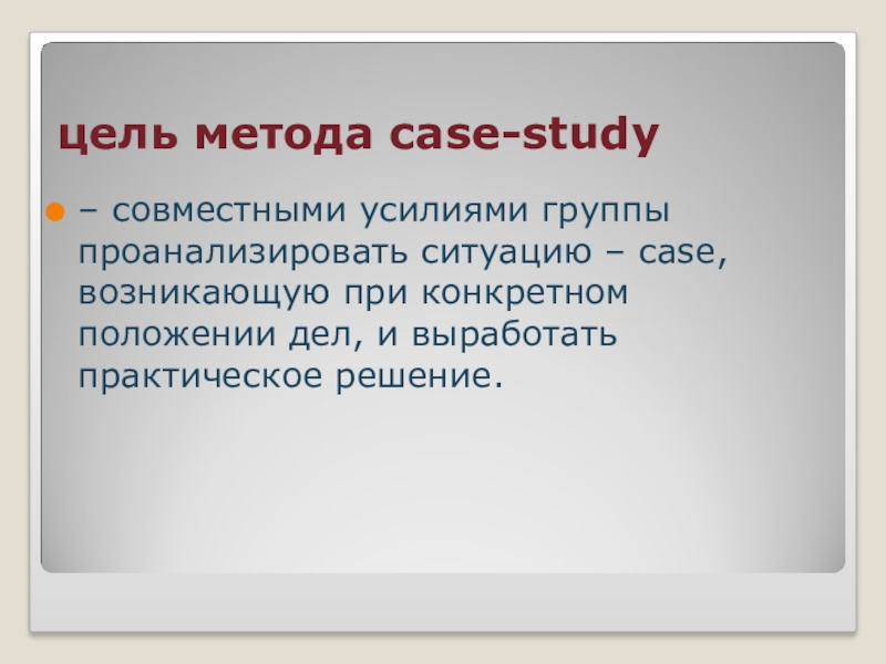 – совместными усилиями группы проанализировать ситуацию – case, возникающую