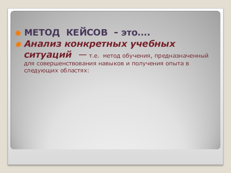 проблемно-ситуационного анализа, основанный на обучении путем решения конкретных задач – ситуаций (решение кейсов).