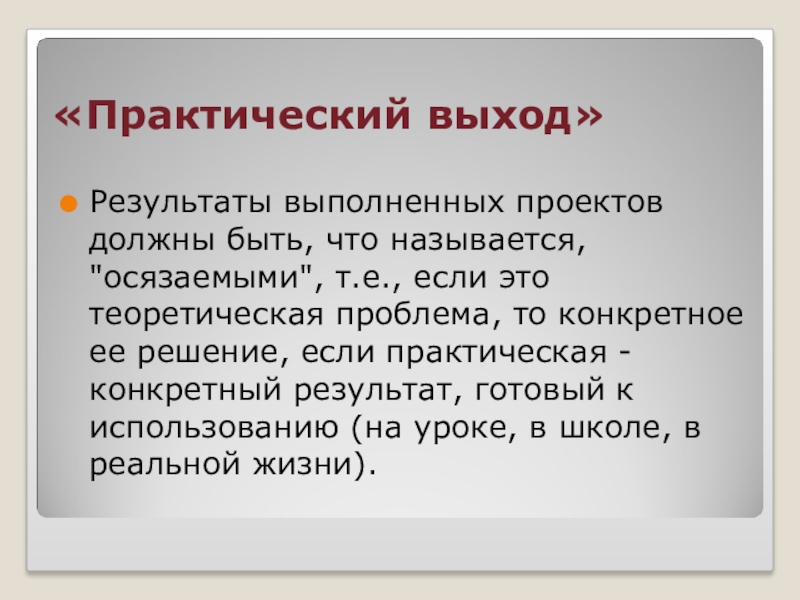 Результаты выполненных проектов должны быть, что называется, "осязаемыми", т.е., если