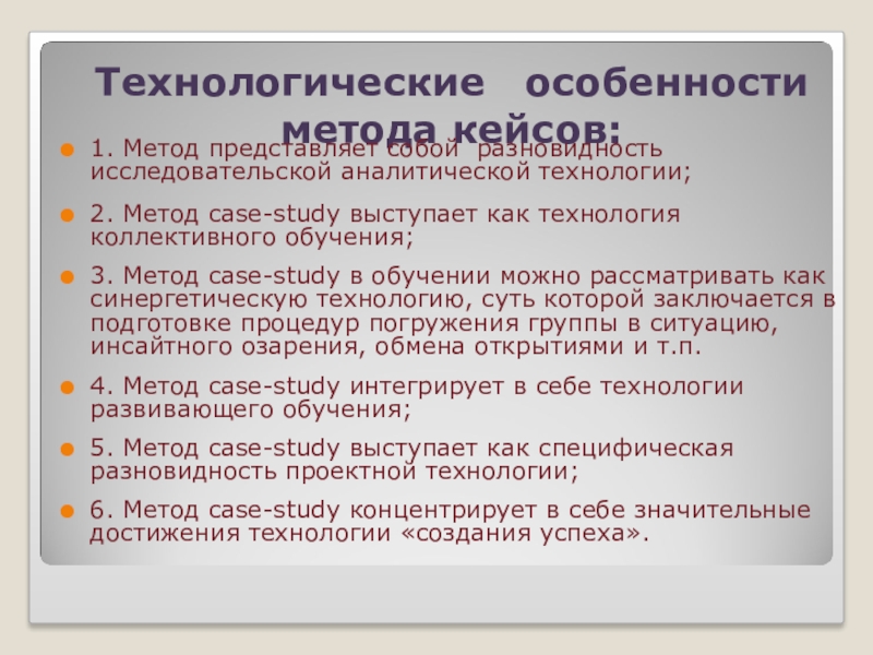 6. Метод case-study концентрирует в себе значительные достижения технологии «создания успеха».