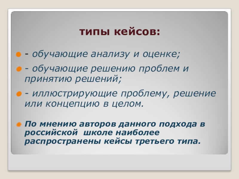 По мнению авторов данного подхода в российской школе наиболее распространены кейсы третьего типа.
