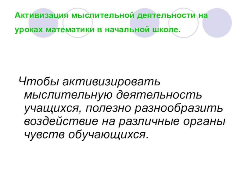 Слайд 4Активизация мыслительной деятельности на уроках математики в начальной школе.