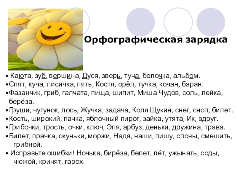 Исправьте ошибки! Ночька, бирёза, белет, лёт, ужынать, соды,