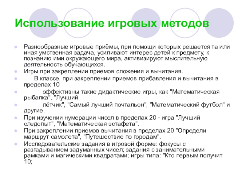 При изучении нумерации чисел в пределах 20 - игра "Лучший следопыт", "Математическая эстафета".