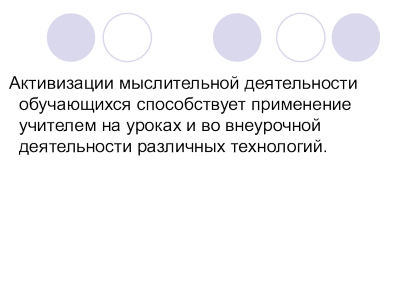 Слайд 9 Активизации мыслительной деятельности обучающихся способствует применение учителем на уроках и