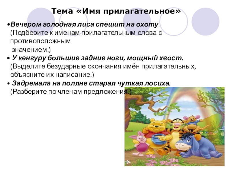 лисичка, пять, Костя, орёл, тучка, кочан, баран.
