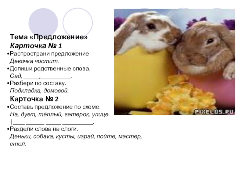 Кость, широкий, пачка, яблочный пирог, зайка, утята, Ик, вдруг.