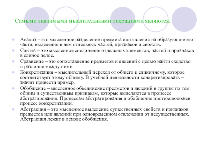 Слайд 3 Самыми значимыми мыслительными операциями являются: