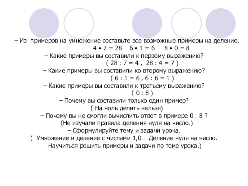 ( Умножение и деление с числами 1,0 . Деление нуля на число.