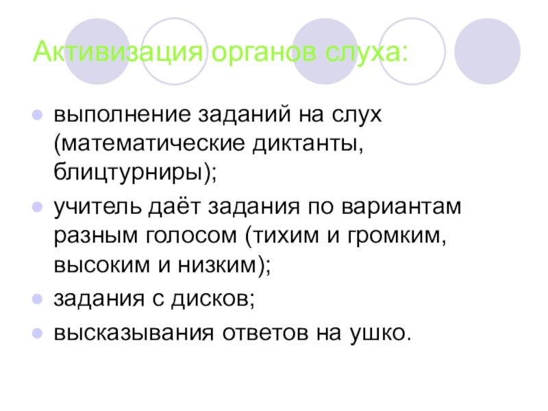 выполнение заданий на слух (математические диктанты, блицтурниры);