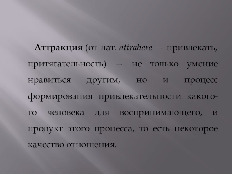 Аттракция (от лат. attrahere — привлекать, притягательность) — не только умение нравиться другим, но и процесс формирования