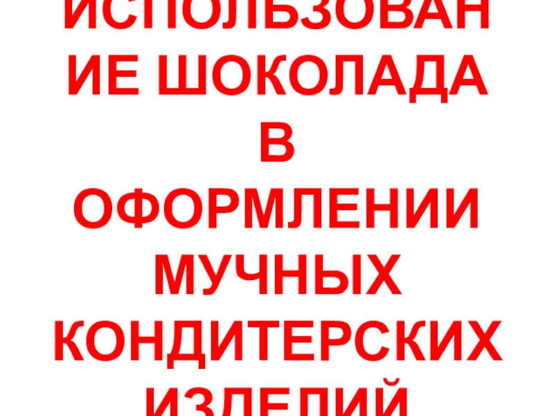 Слайд 1ИСПОЛЬЗОВАНИЕ ШОКОЛАДА В ОФОРМЛЕНИИ МУЧНЫХ КОНДИТЕРСКИХ ИЗДЕЛИЙ