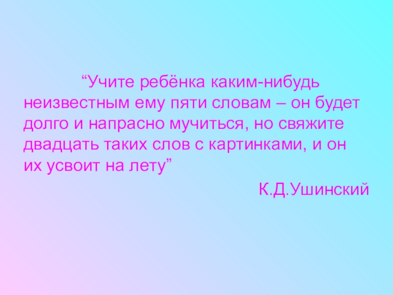 пяти словам – он будет долго и напрасно мучиться, но свяжите двадцать таких слов с картинками, и он их усвоит на лету”